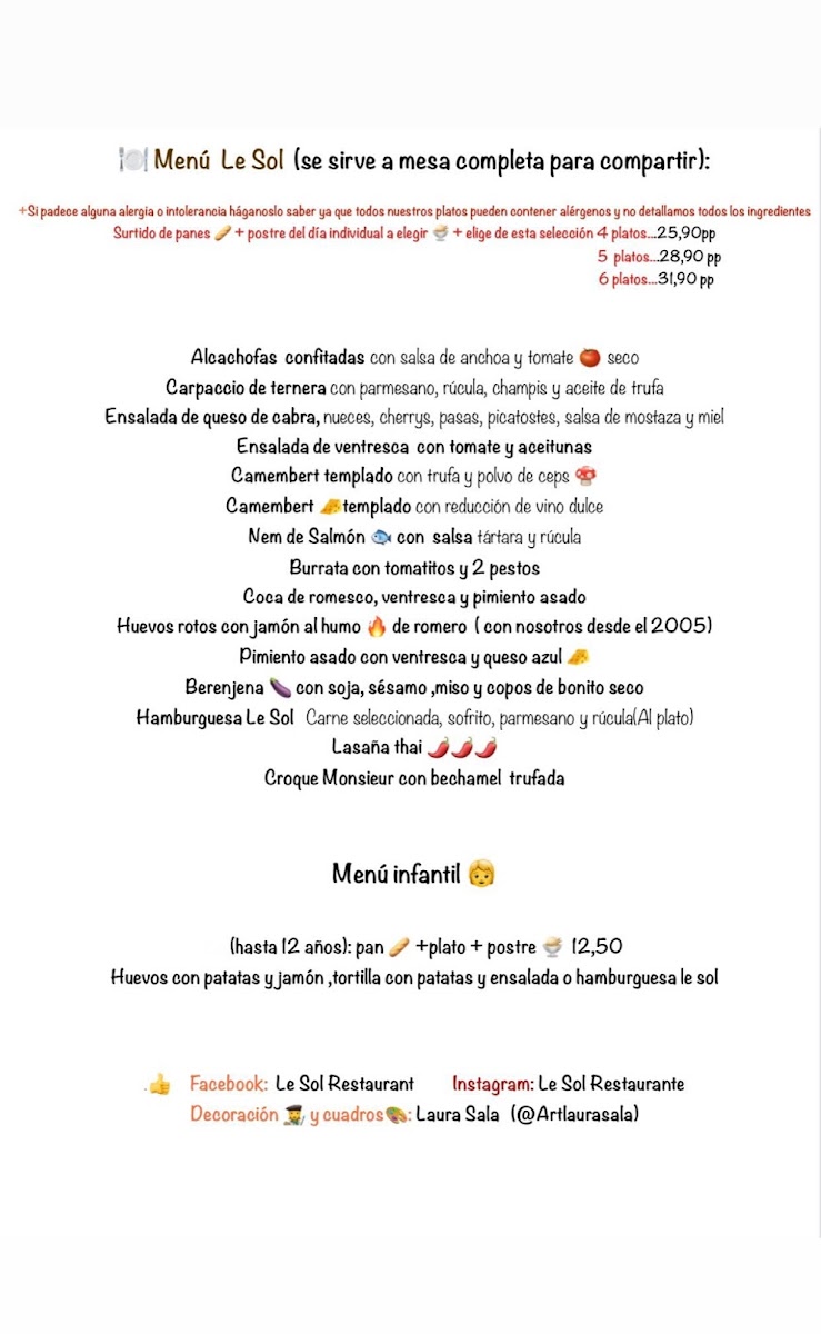 Le Sol Restaurant offers a thoughtfully crafted Mediterranean menu that balances casual dining with an artistic touch. The dishes invite you to enjoy a relaxed meal, whether sharing small plates or savoring heartier options in a cozy, colorful setting.